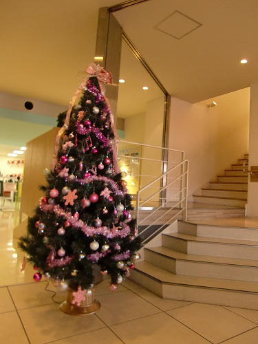 ゲート入ってすぐにはピンクの飾りつけが可愛らしい大きなツリー!