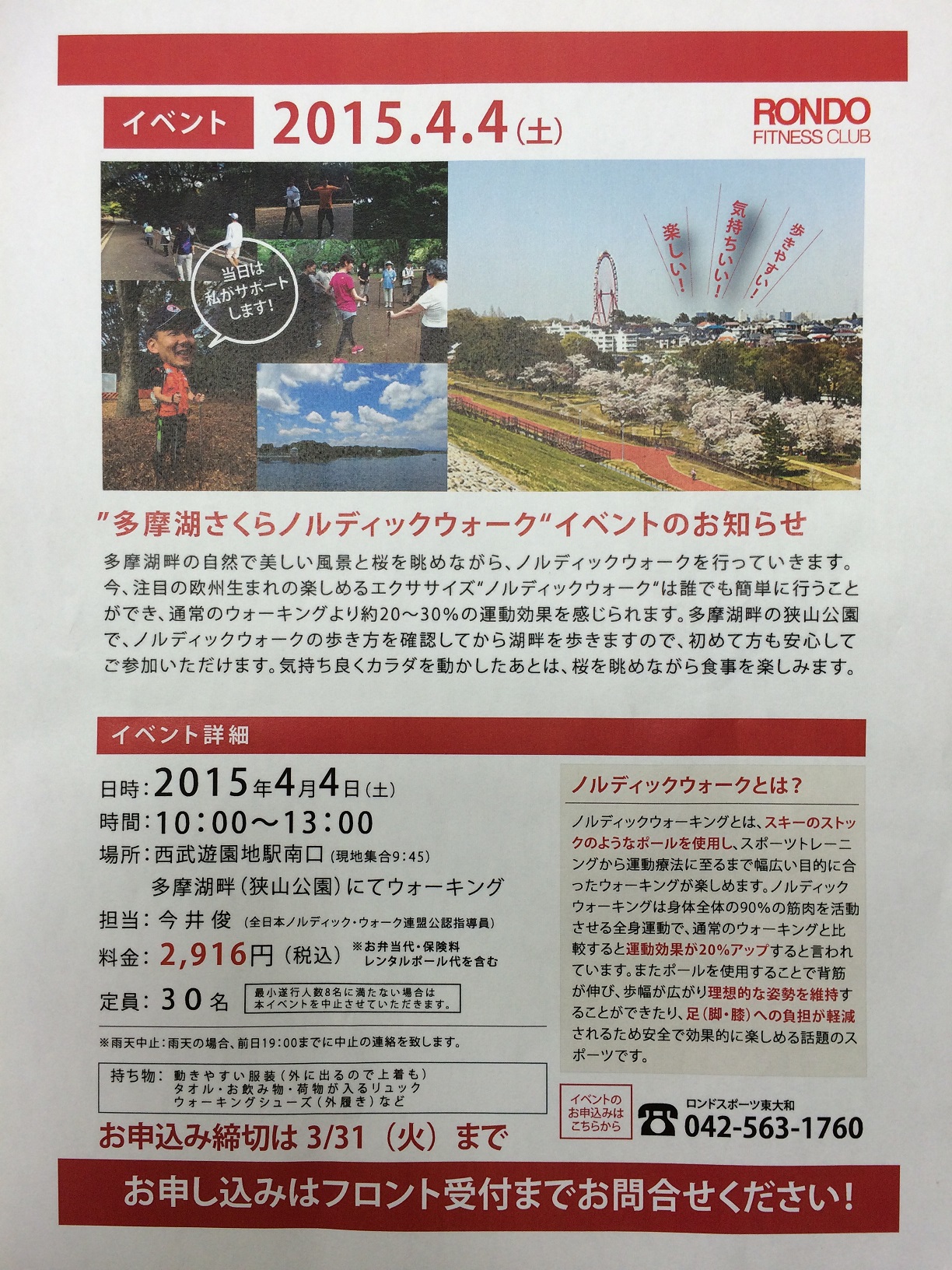 「多摩湖さくらのディックウォーク」のお知らせです。